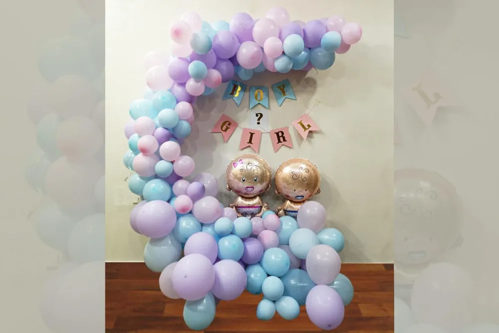 Celebrate the joy of welcoming a new life with this elegant baby shower decoration. The beautiful pastel balloon arch with cute baby props creates a lovely and cheerful setup, perfect for the mom-to-be. It’s a wonderful way to make the baby shower ceremony feel warm, special, and memorable for everyone. 👶🎈